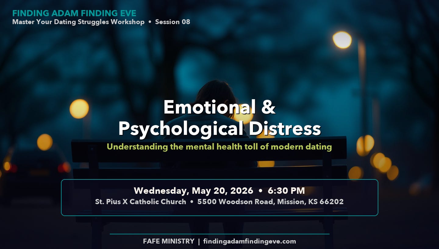 Hashtags: #CatholicDating #MentalHealthMatters #DatingDepression #CatholicMentalHealth #DatingBurnout #EmbodiedSoul #FindingAdamFindingEve